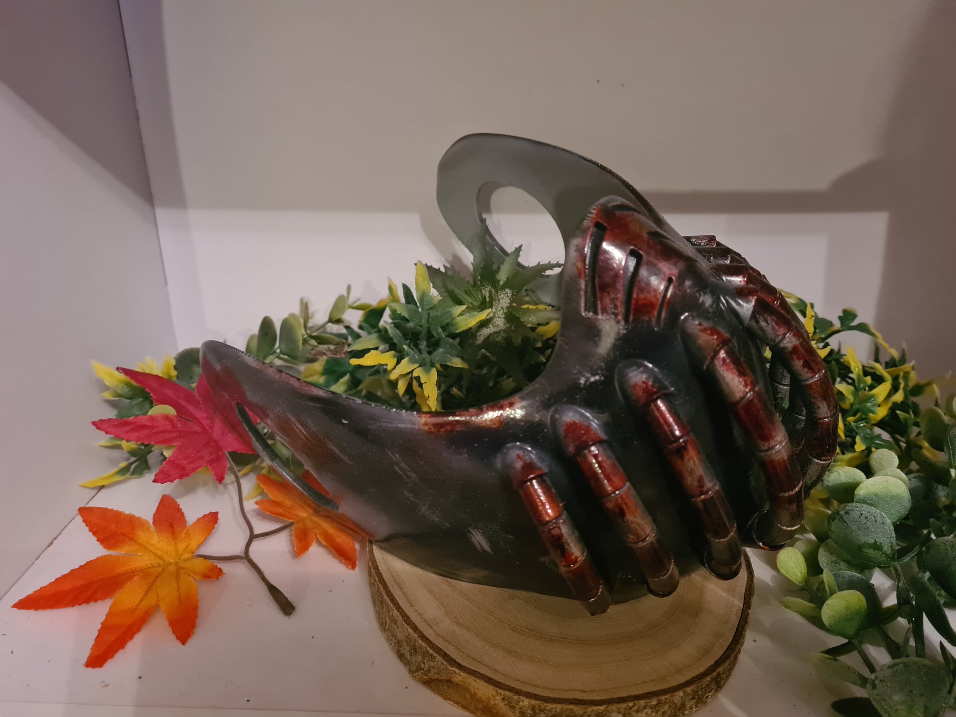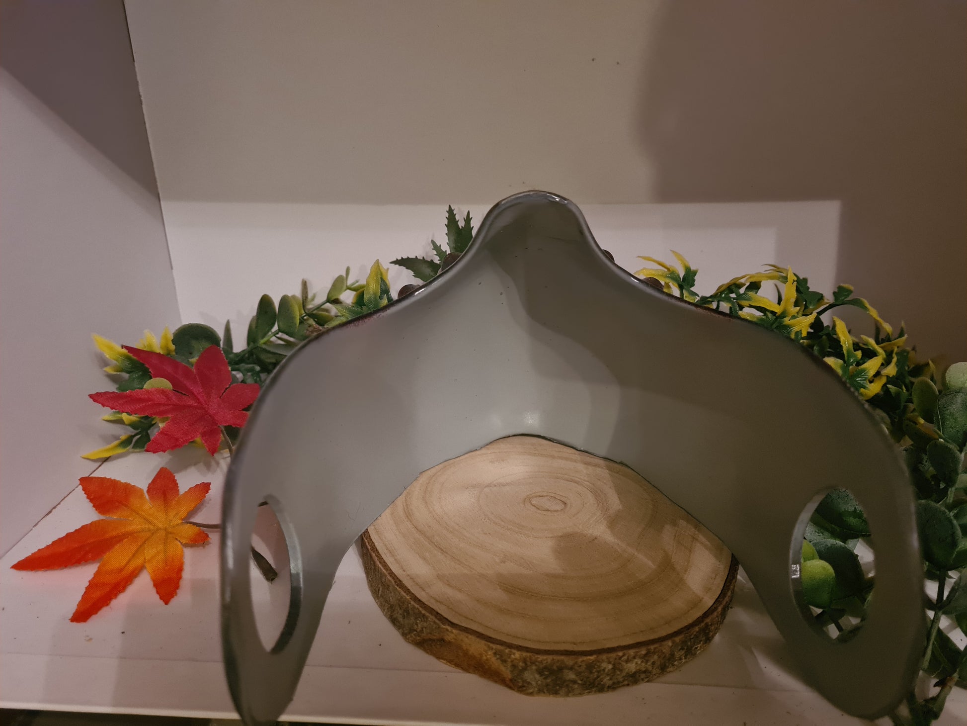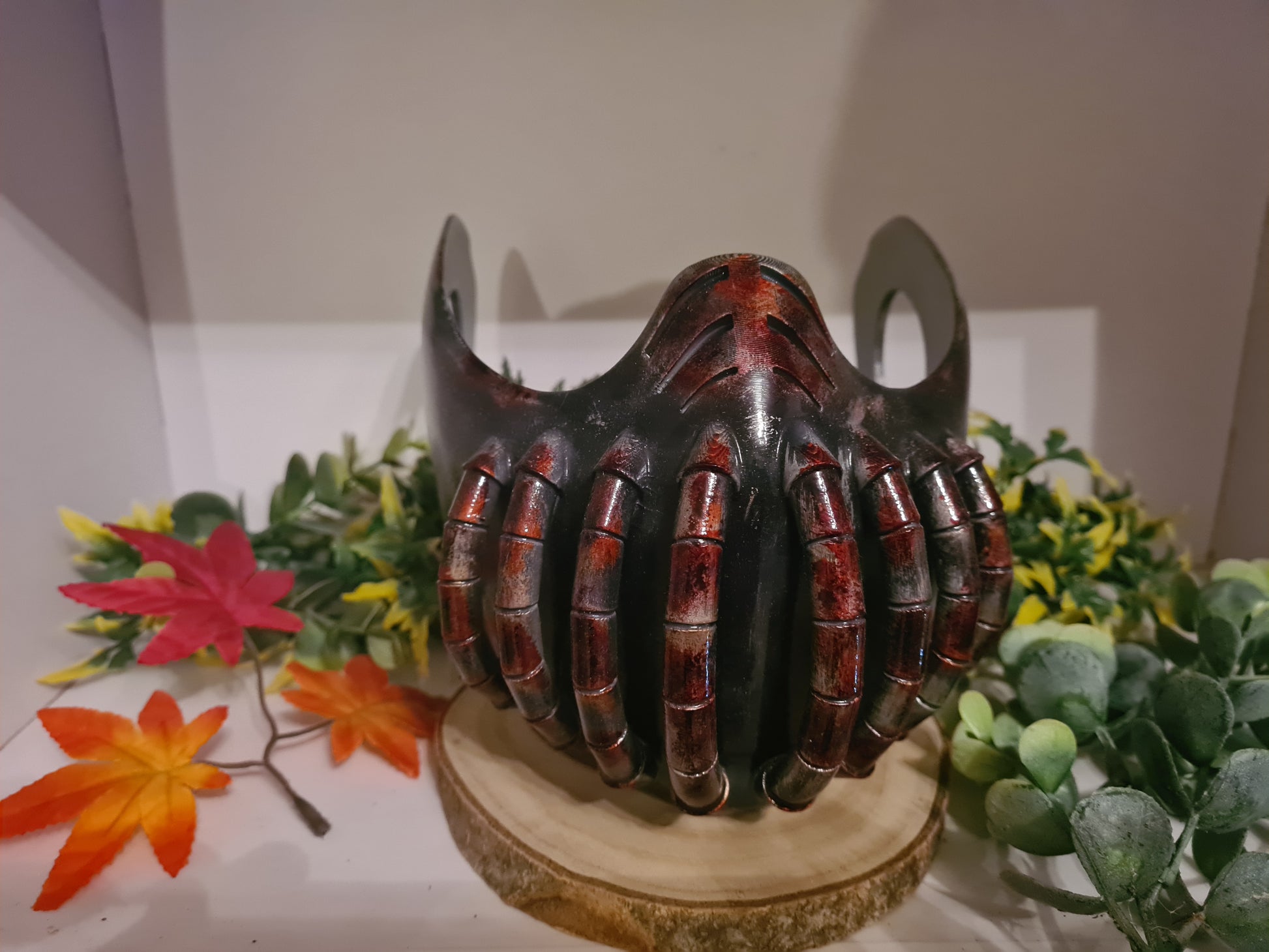 Mit einem Innenmaß von ca. 12,5 cm passt sie bequem auf die meisten Gesichtsformen und eignet sich ideal für Conventions, Fotoshootings, Halloween oder als Sammlerstück. Die dunkle Metallic-Oberfläche mit roten Akzenten verleiht der Maske einen bedrohlichen, fast sci-fi-artigen Look, der garantiert alle Blicke auf sich zieht.