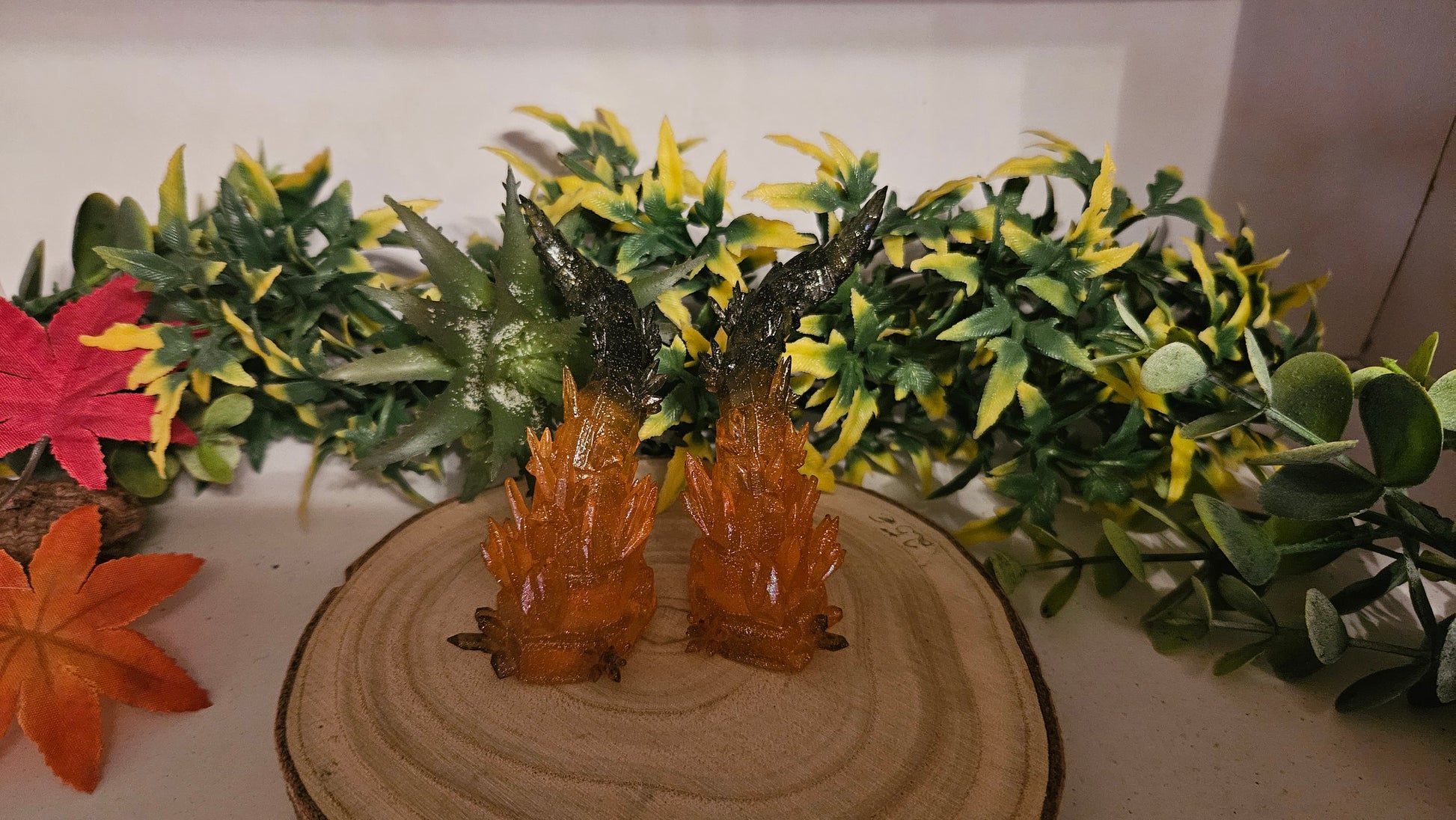 Diese 7 cm großen Hörner wurden aus hochwertigem Harz 3D-gedruckt, sorgfältig veredelt mit einem goldglitzernden Finish und sind ein echter Blickfang für jede Convention, Halloween-Party oder Fotosession.